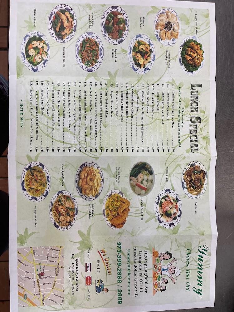Welcome to Yummy Chinese Take Out, your go-to destination for delicious Chinese cuisine in Irvington, NJ. Nestled at 1120 Springfield Ave, we specialize in quick takeout and delivery that satisfies your cravings without breaking the bank, with meals priced between $10 and $20. Enjoy a relaxed atmosphere perfect for lunch or dinner, whether dining solo or with family. Our menu features vegetarian-friendly options and traditional dishes, ideal for sharing or a quick bite. Plus, we offer wheelchair accessibility, ample parking, and convenient payment methods. Stop by or call us at +1 973-399-2888 for a tasty, hassle-free meal!